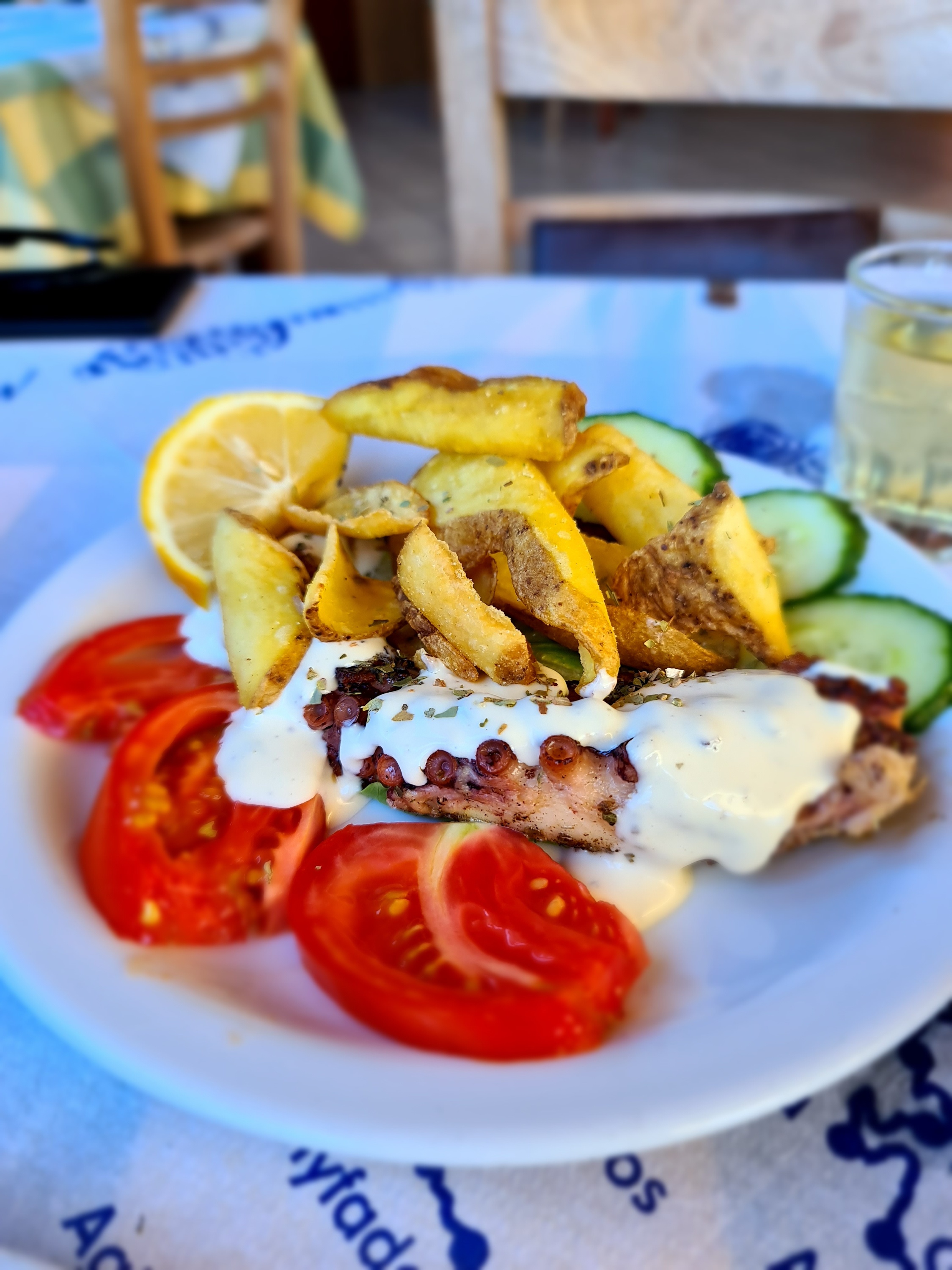 The food is super fresh and being prepared daily with the produce they get delivered from the boats and the local market. You can find all the delicious local specialities like deep fried squid, greek salads, grilled aubergines with feta cheese, fresh fish and octopus – all served with delicious freshly fried potatoes.