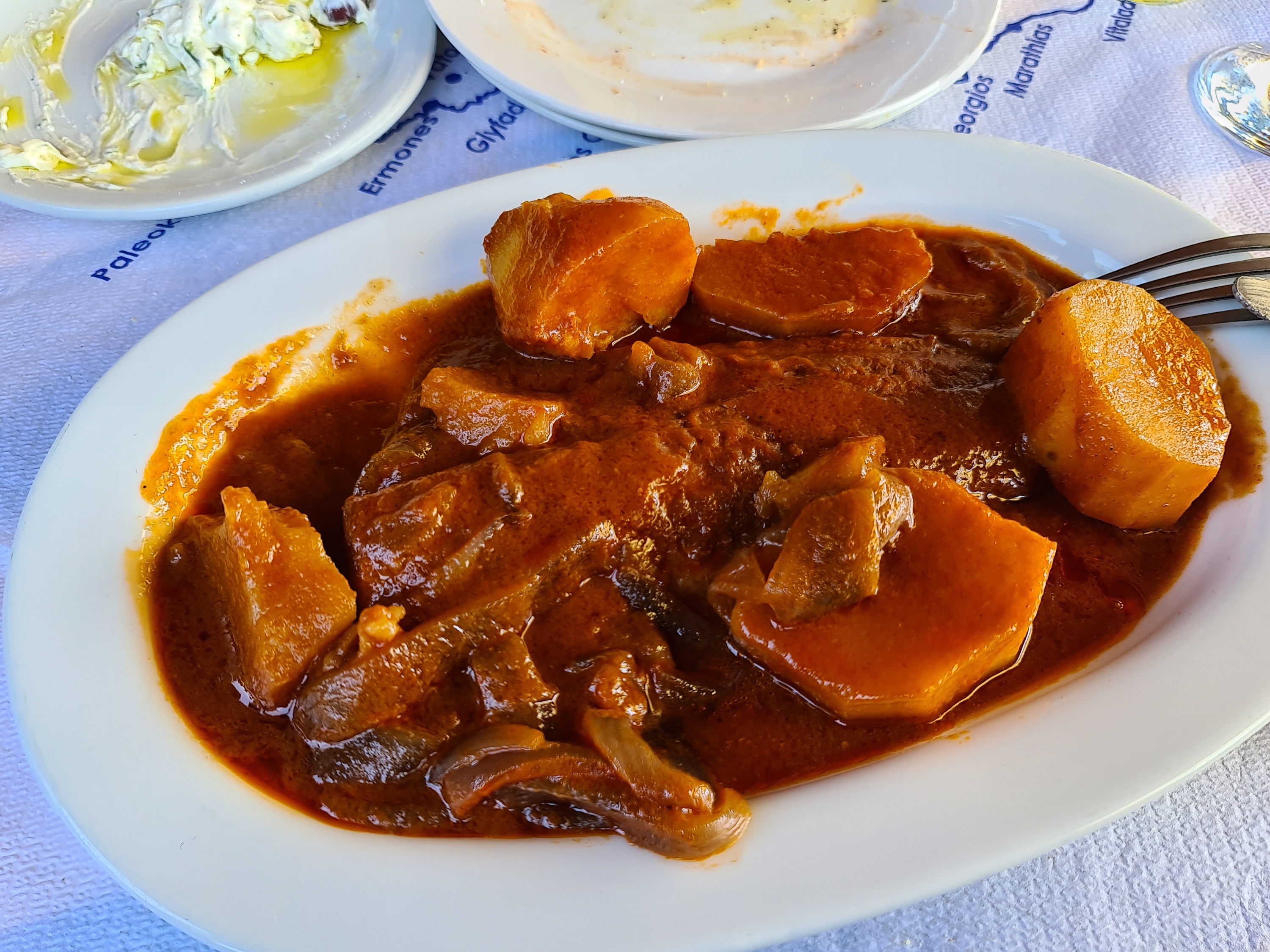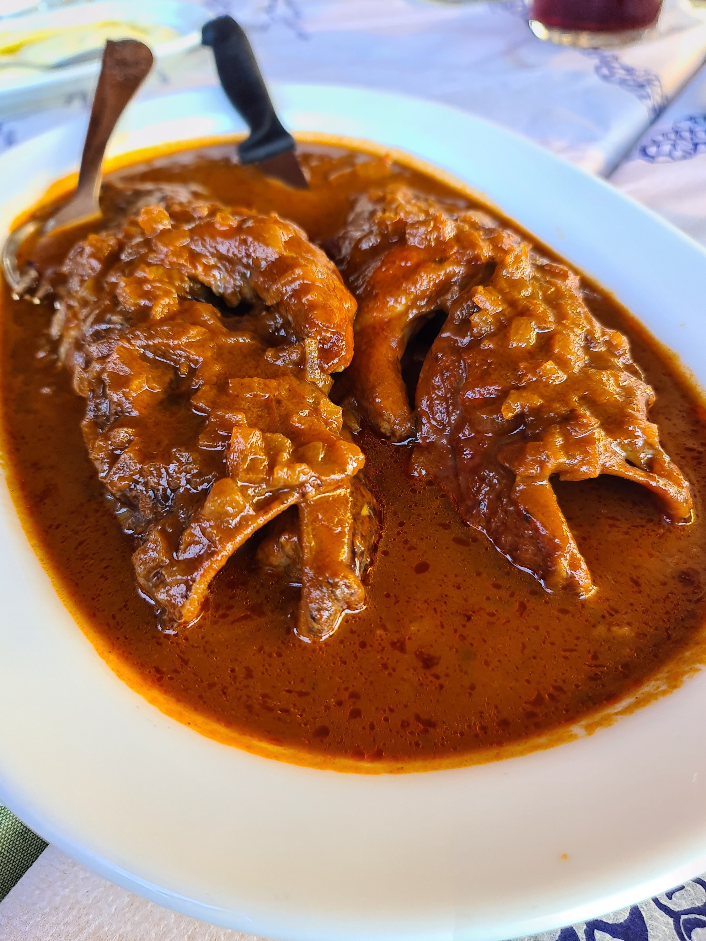 One of the dishes we will always remember was scorpion fish bourdeto – a fish stew with lovely spicy, tomatoey red sauce – I am salivating just typing it. Couple of times we visited Ortholithi we had cod bourdeto but Aspassia kept telling us how amazing the true bourdeto is – one with scorpion fish – but sadly as it was nearly out of season, it was a difficult fish to catch.